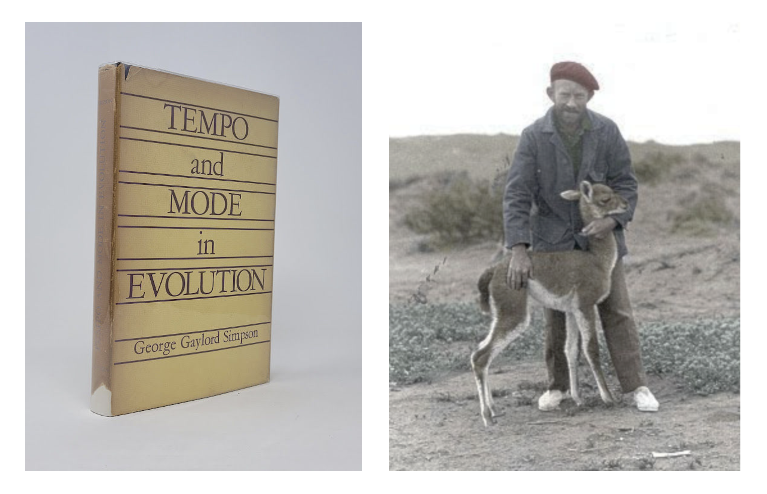 George Gaylord Simpson and his most famous book, Tempo and Mode in Evolution (1944). Also, like a llama or something