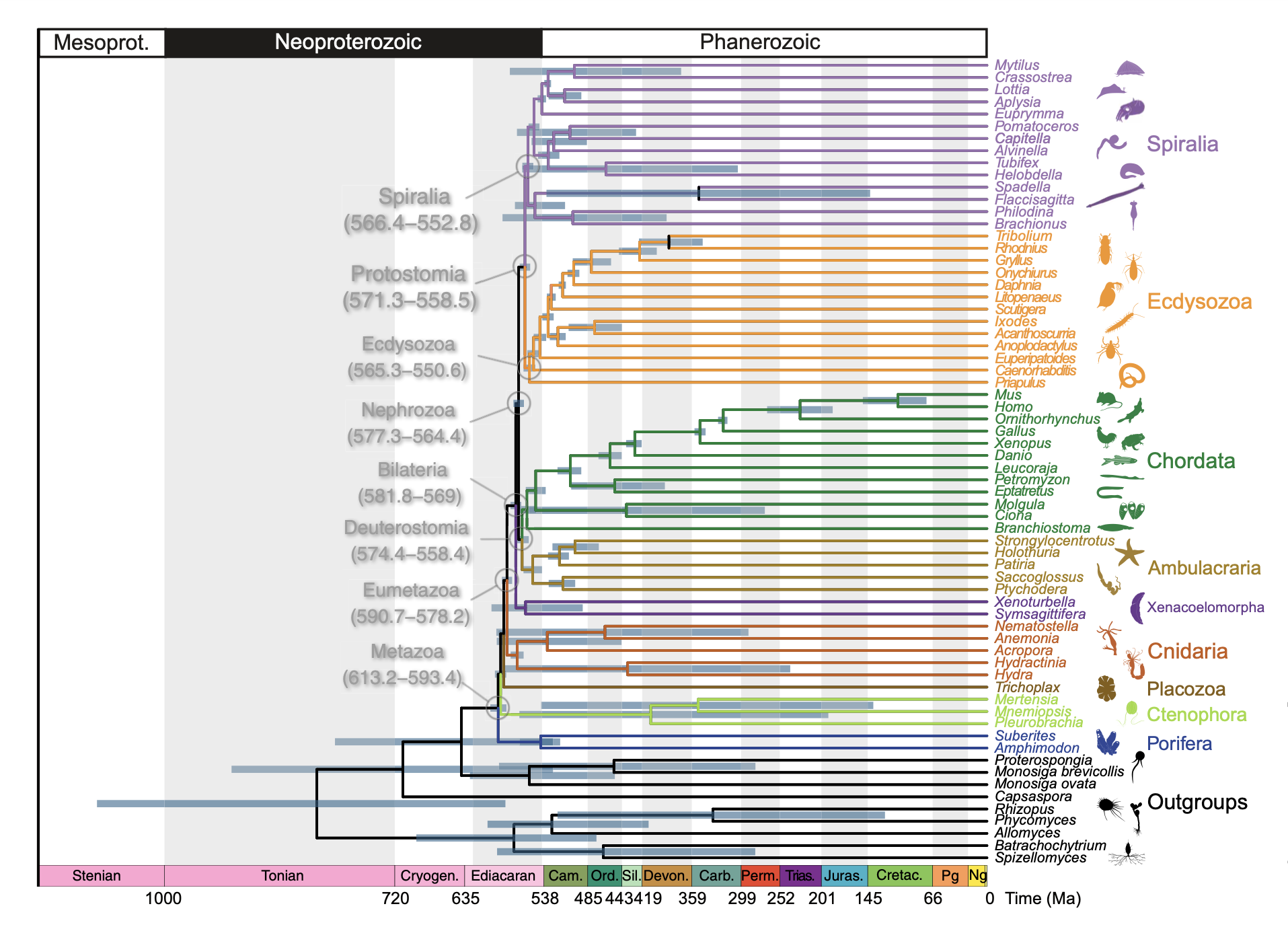 Dohrmann, M. and G. Wörheide 2017. Dating early animal evolution using phylogenomic data. Scientific Reports 7:3599.